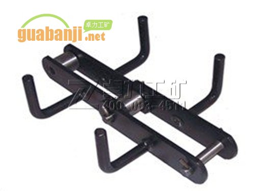 刮板牵引链的链条是用18*64的圆环焊接而成,为了适应调整牵引链长度的需要,还备有3、5、7、9、11环等不同长度的调节链。