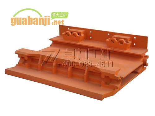 溜槽分为中部槽、调整溜槽和过渡溜槽,溜槽是整个刮板运输机的机身,有一定的强度,有较高的耐磨性。中部槽又叫标准槽,其规格为1500*620*180,每节溜槽可偏转30。