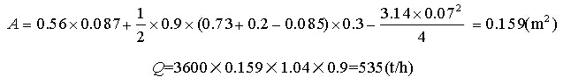 当给定工作面刮板输送机的生产能力,验算溜槽最大物料断面面积A':