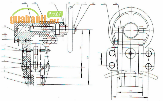4——垫圈20 5——右阻链架 6——凸轮